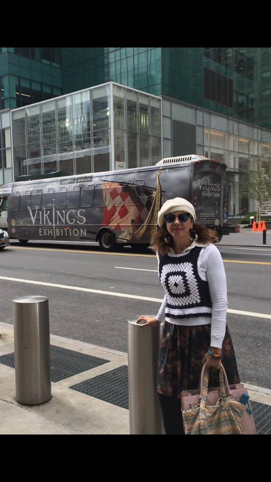 A astróloga Jacqueline Cordeiro, apaixonada pelas Runas, por Odin e povos povos Vikings, em New York, aguardando ansiosa pra ver a exposição em maio/16.