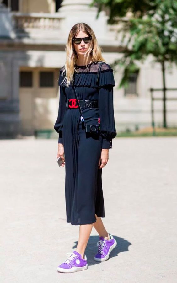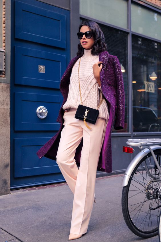 Pode até não parecer, mas o ultra violet é bem democrático, funciona desde as produções mais simples, até aqueles visuais super montados de semana de moda. A dica para não gerar tanto impacto com esse roxo é investir em combinações com peças mai neutras: uma caça jeans, uma t-shirt, uma regata, de preferência em tons também neutros, garantem aquele look basiquinho mas com um toque original.
